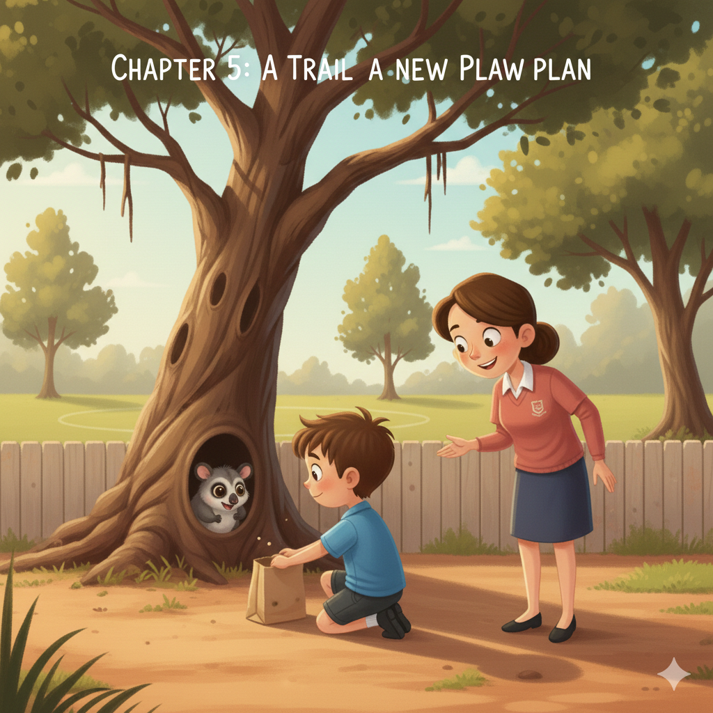 Liam climbed back over the fence, clutching his empty koala lunchbox. He knew he couldn’t be mad at the possum. It was just a wild animal looking for food.