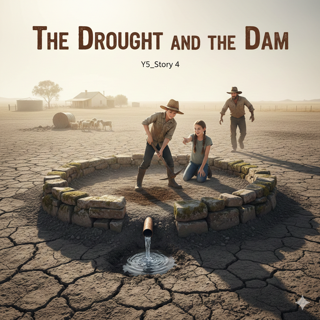 Riley and his older sister, Sophie, spent their afternoons sitting by the dam’s edge, watching the water line drop a little lower each day. They worried about their family’s few remaining sheep and the small garden. Their parents looked stressed and tired. Everyone was conserving every drop of water.