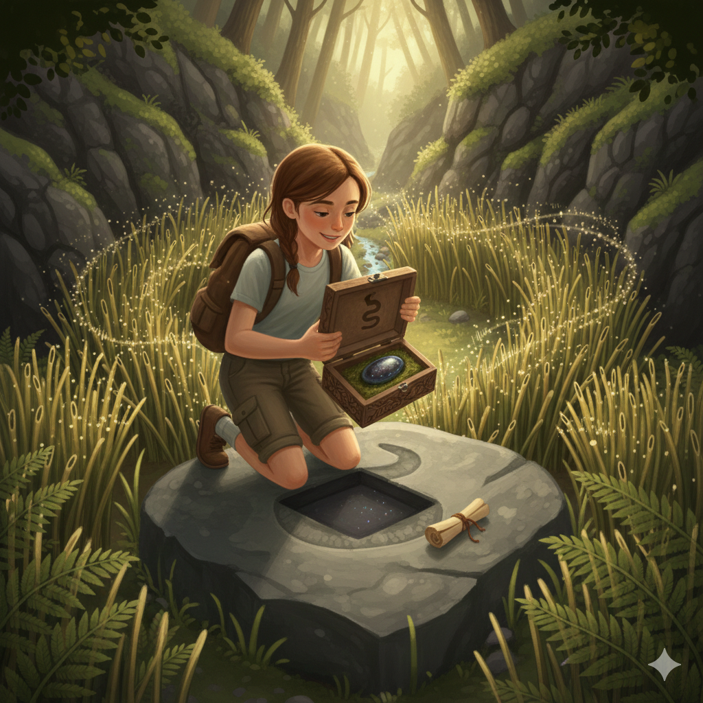 The box contained a single item: a polished, dark stone, smooth and cool to the touch. It wasn’t just any stone; it had a faint, iridescent shimmer, as if holding captured starlight. There was also another, much smaller, scroll of parchment, tied with a thin leather string. Elara carefully untied it and unrolled it. Written in her grandfather’s familiar, elegant handwriting, it read: “The true treasure is the journey, and the stone holds the starlight of forgotten stories. Listen closely, and it will guide you.”