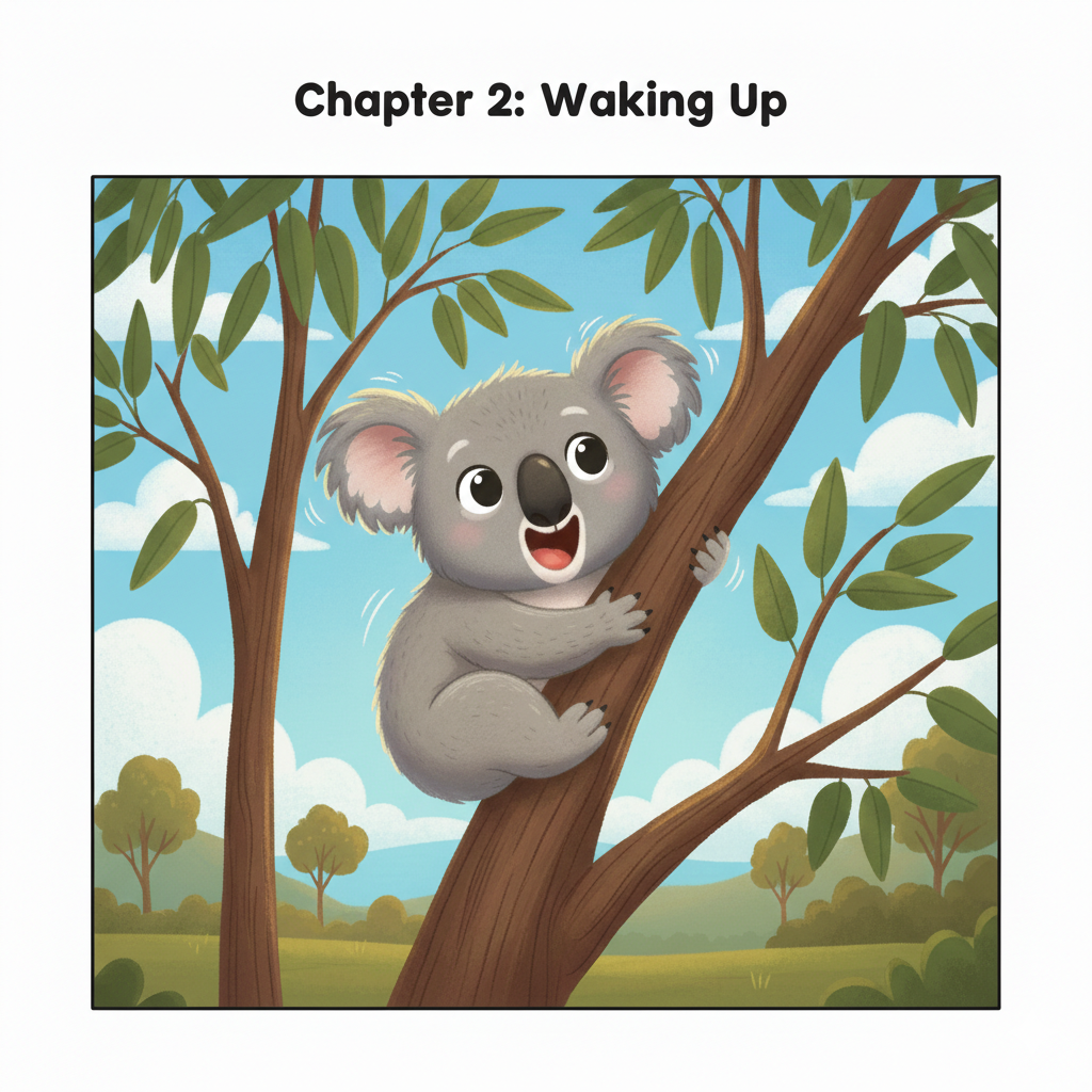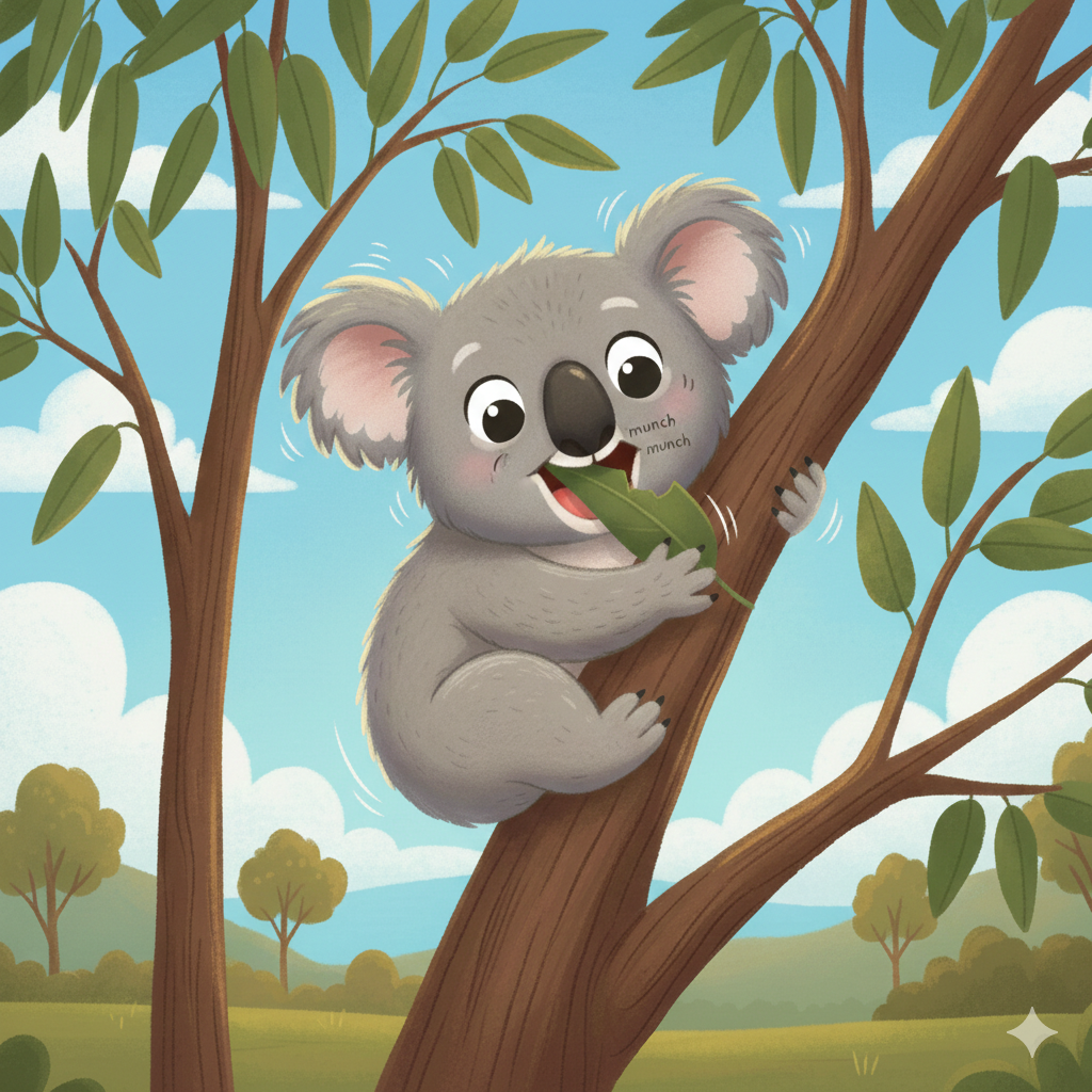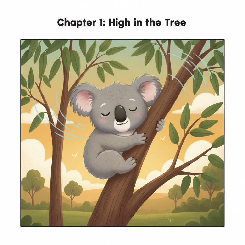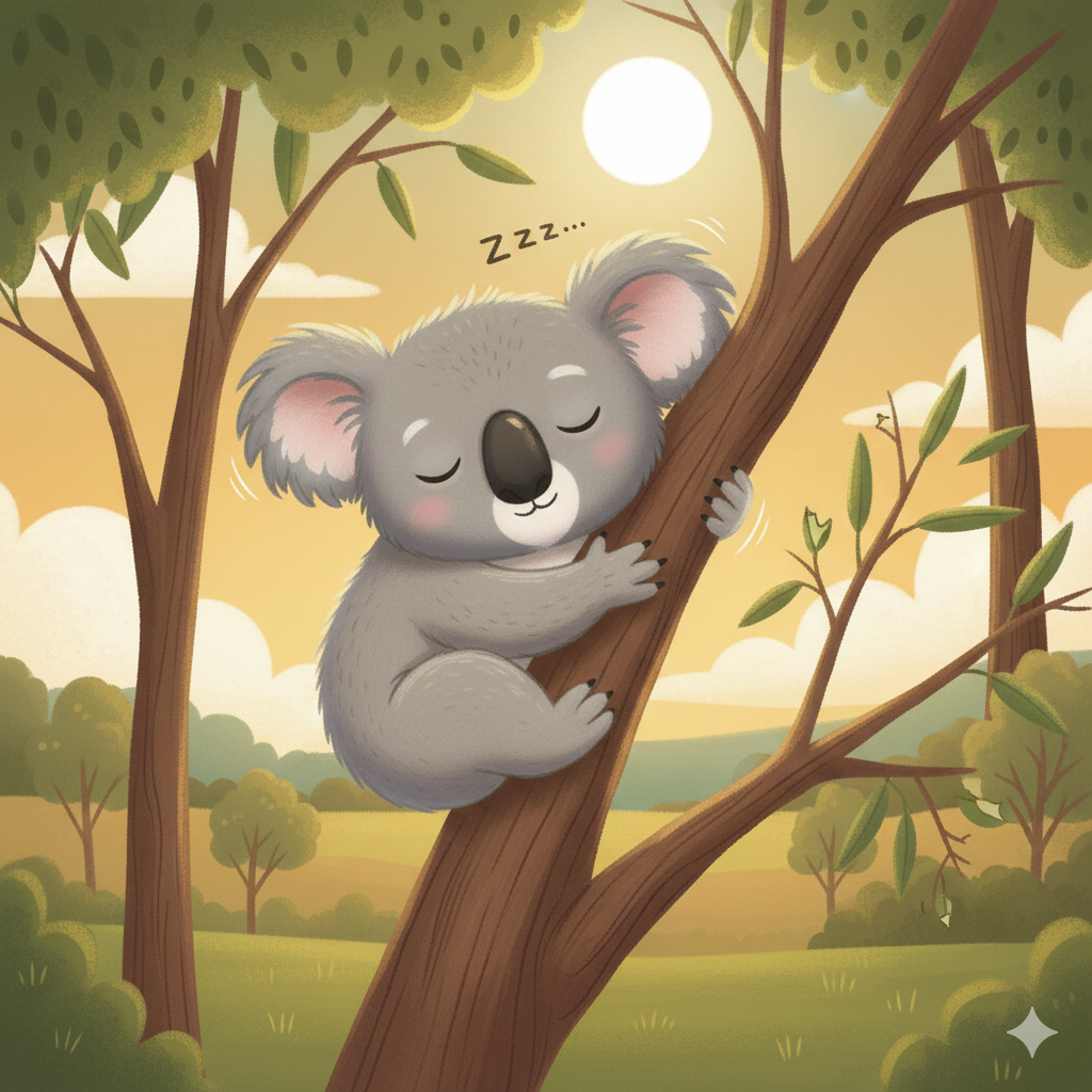 Draw a picture of Koko the koala sleeping in her gum tree.