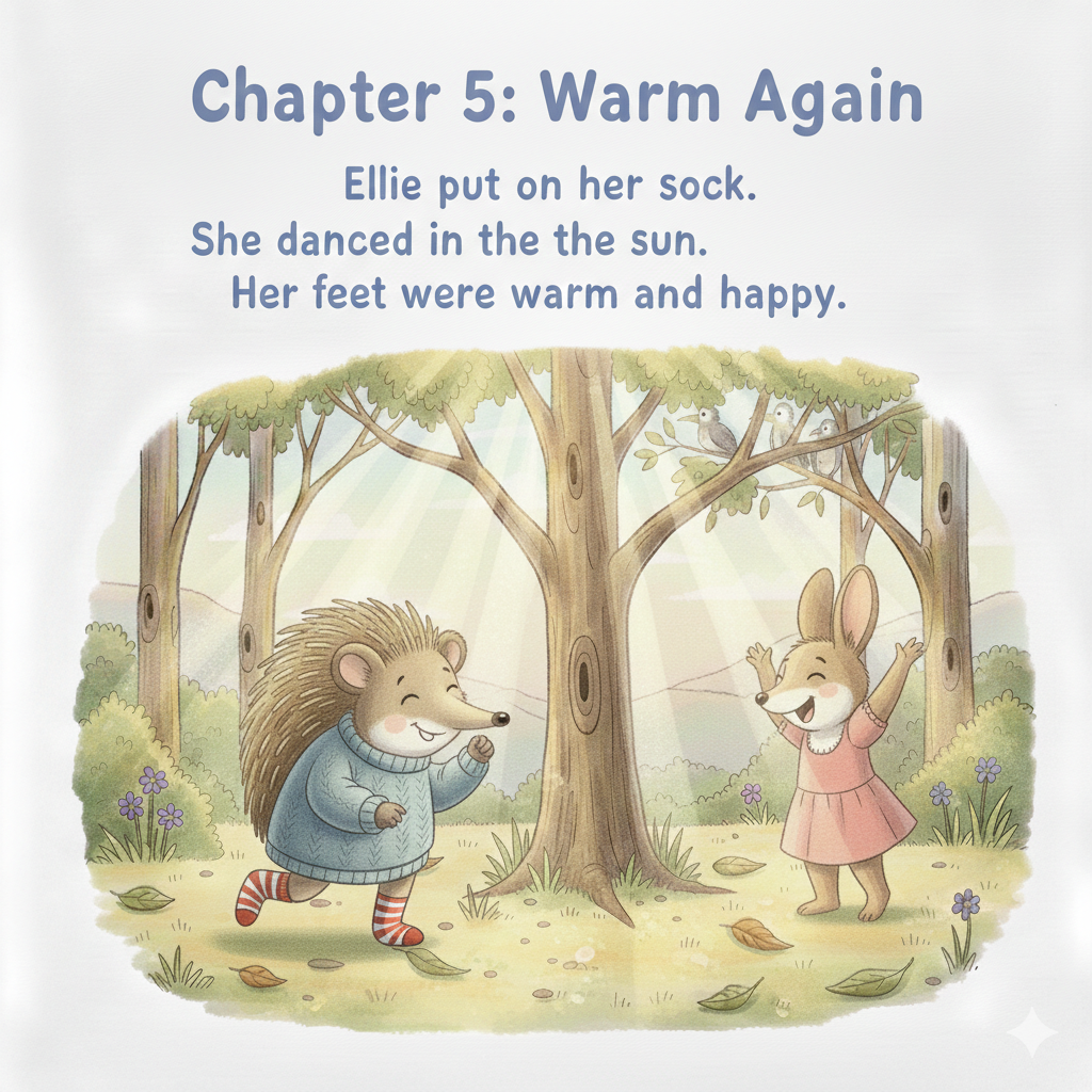 Ellie put on her sock. She danced in the sun. Her feet were warm and happy.