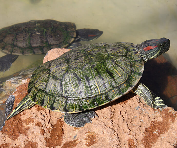 Freshwater turtles are reptiles with hard shells that protect them from predators. They spend most of their life in the water, only coming on land to migrate between water bodies or to nest.