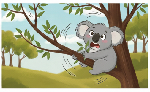 Suddenly, the branch wobbled. “Uh-oh!” Koko held on tight. “I must be careful,” she whispered.