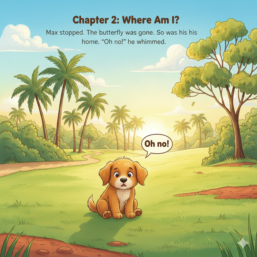 Max stopped. The butterfly was gone. So was his home. “Oh no!” he whimpered.