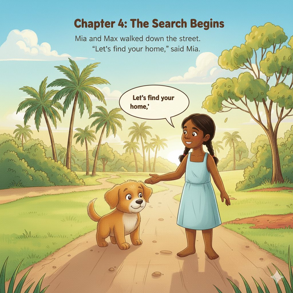 Mia and Max walked down the street. “Let’s find your home,” said Mia.
