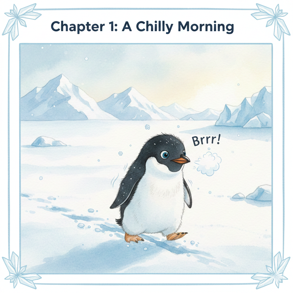 Percy waddled across the ice. “Brrr!” he said. “It’s colder than usual today.”