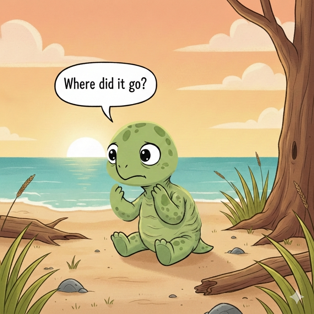 Tammy woke up and couldn’t find her shell. “Where did it go?” she cried.