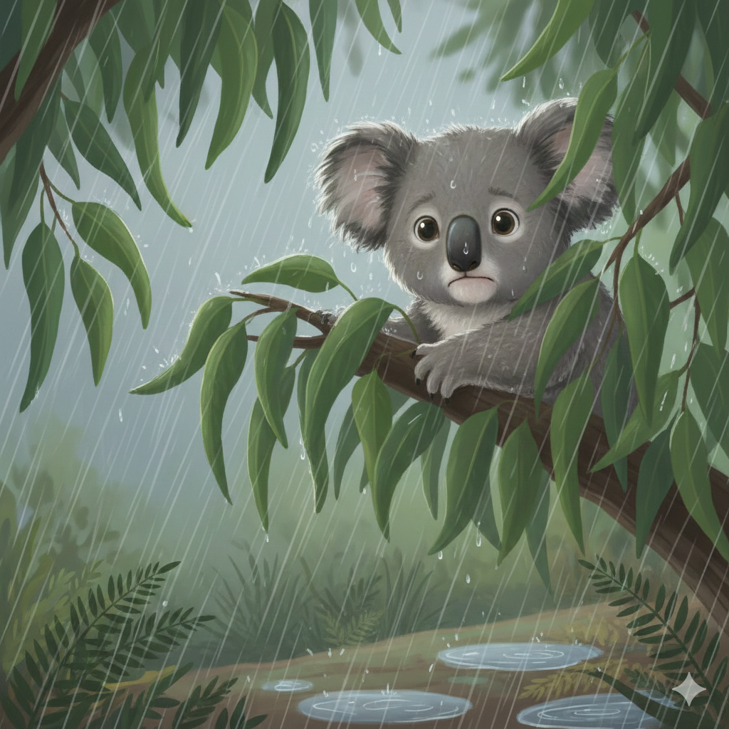 Zoe looked out from her tree. “It’s pouring!” she sighed. “No climbing today.”