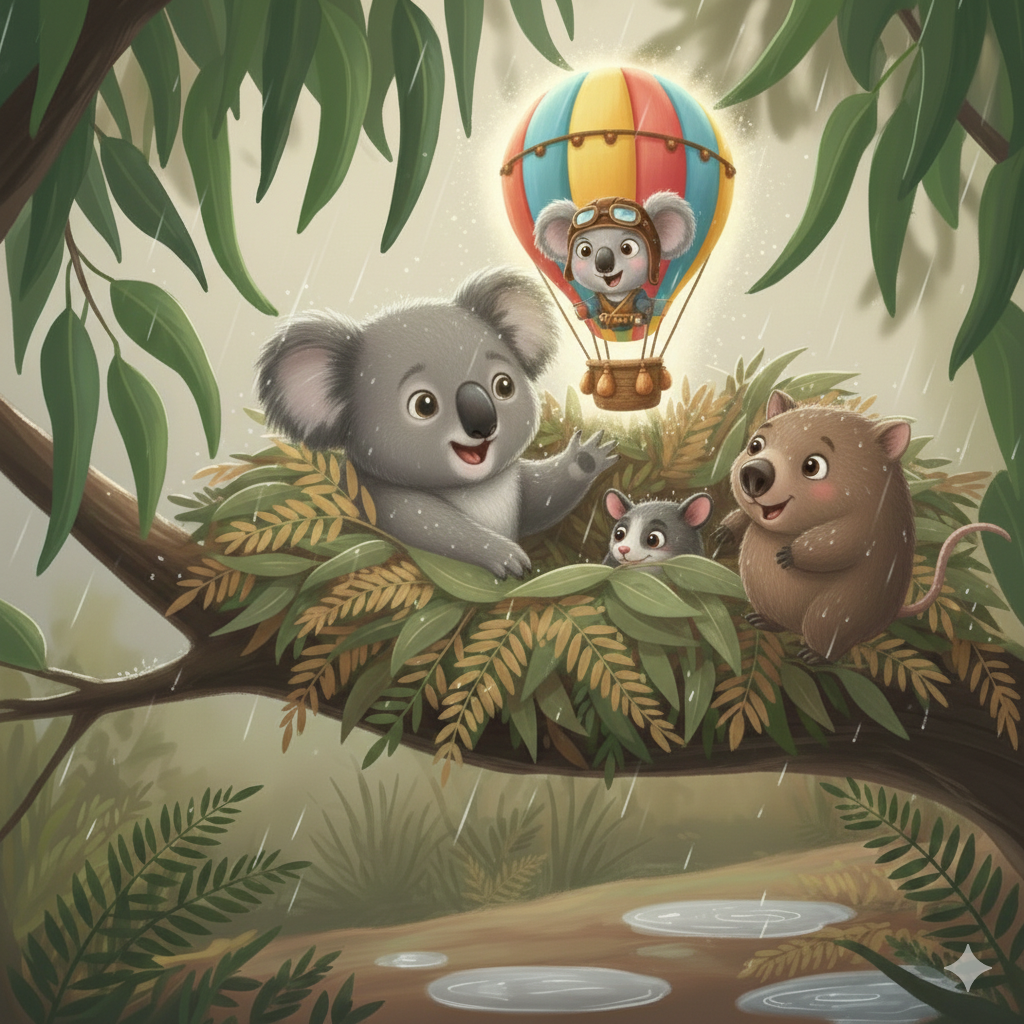 Zoe told a story about a brave koala who flew in a hot-air balloon. Everyone listened closely.