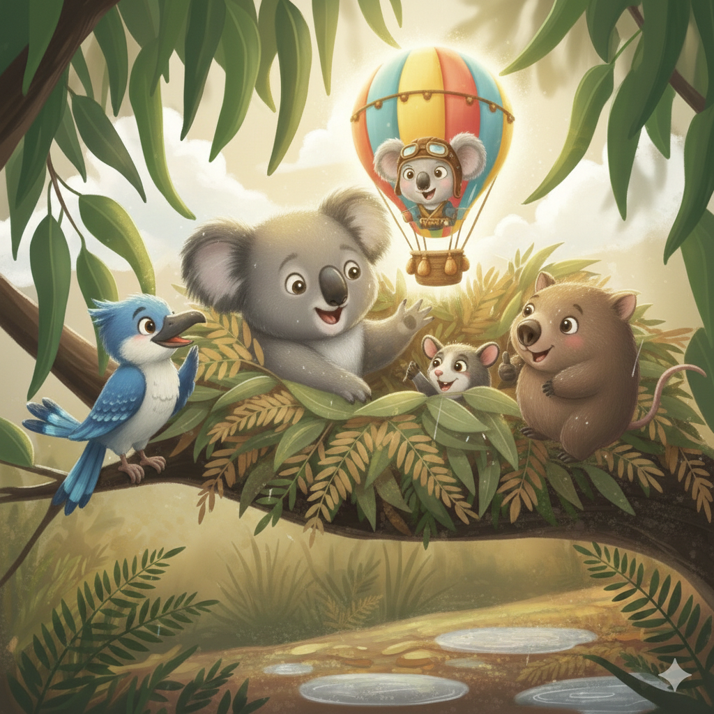 Her friends came by—Wally the wombat, Penny the possum, and Ned the kookaburra. “Can we join you?” they asked.
